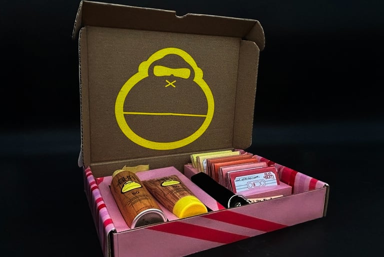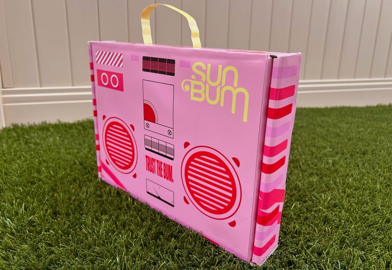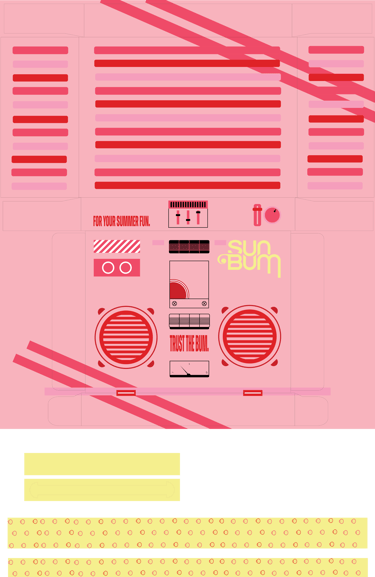 A thrilling project that meets the market of design and branding today. Creating a Influencer Box allowed full creative freedom to decide how the box would be created and what it would cater too. As has been acknowledged, Sun Bum's audience is beach goers, surfers, families, and those who enjoy the summer sun. An influencer box's goal is to create buzz and broaden the audience, through a box that is aimed at music lovers and festival goers, the audience for Sun Bum is broadened.