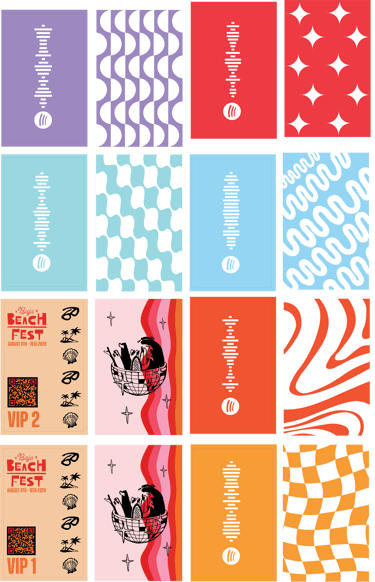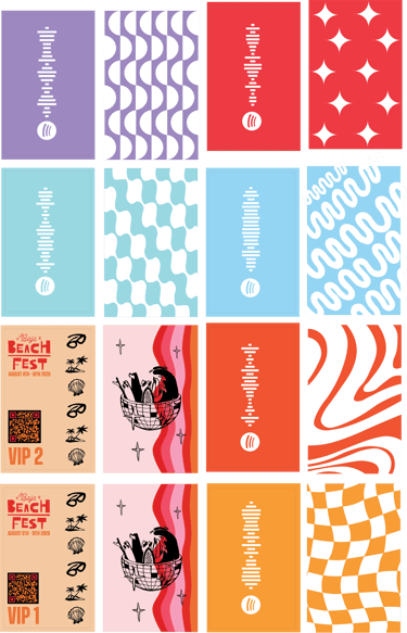 The box was hand wrapped and designed with the mechanicals all featured above. The cassette tapes were hand designed and crafted, each containing a scannable Spotify card. The box also included two "VIP Passes" to the Baha Beach Festival.