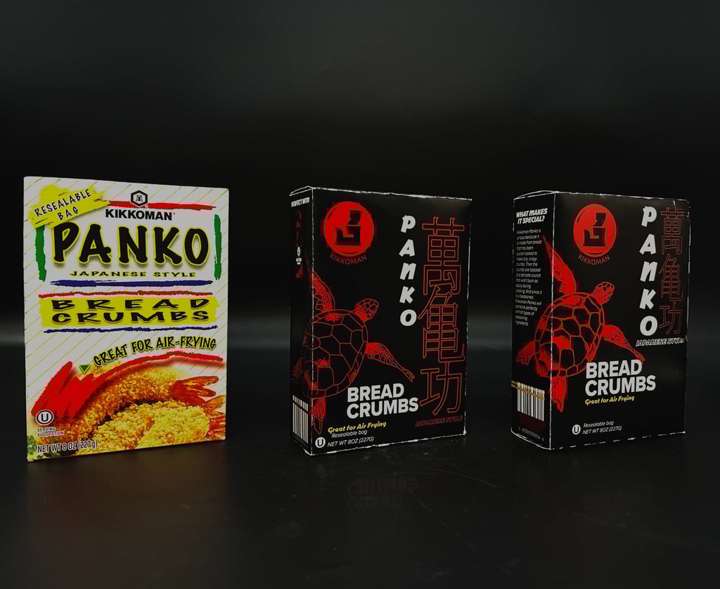 With Kikkoman Panko Breadcrumbs packaging being in desperate need of attention, a refresh was long awaited. From bright friction colours and no cohesive flow in hierarchy, finding a combination that would stand out on the shelf was important. With the striking black and new Kikkoman logo that ties in their traditional heritage, the new packaging came to life.