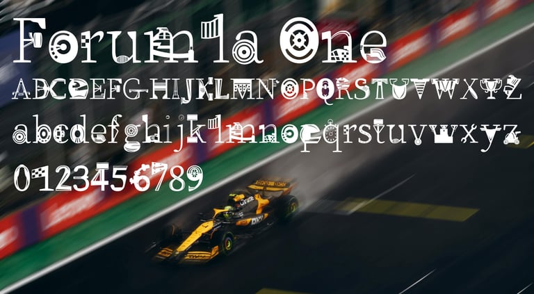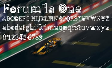 Formula One, a high paced, always intense motorsport and one that is the core of this modified typeface. With Source Serif Variable being the base, each letter form, number, mark, symbol, and so on is derived from a element and feature of Formula One. A typeface that can be used for the face of the sport, merchandise, and everything in between.