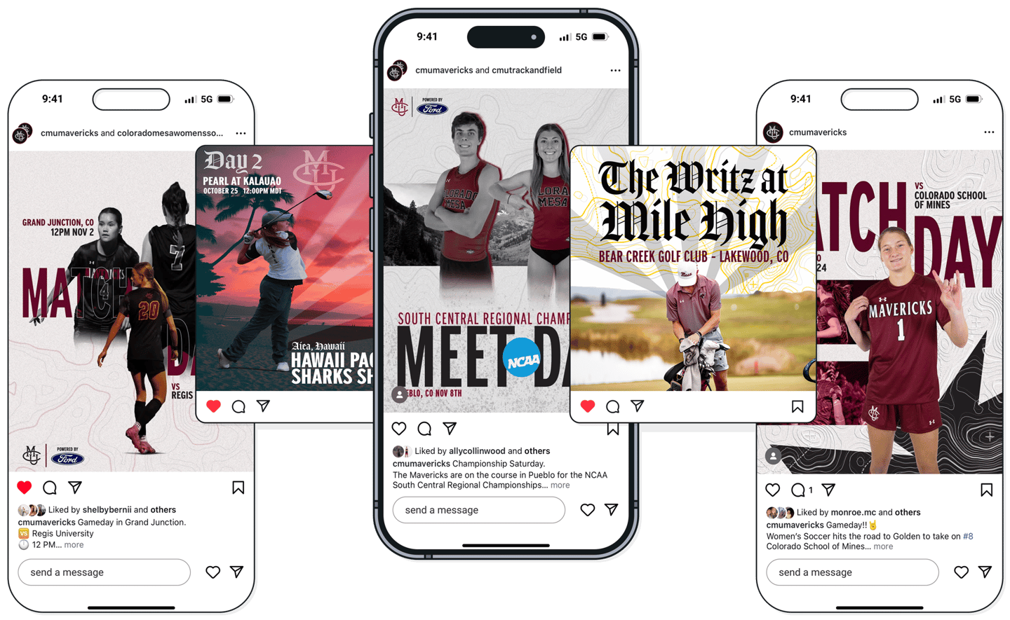 The new brand style guide for all CMU Sport graphics, so far each sport is having its unique twist on what it will look like. No design is completely the same but all have the same voice when featured on the CMUMavericks Instragram.