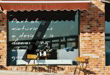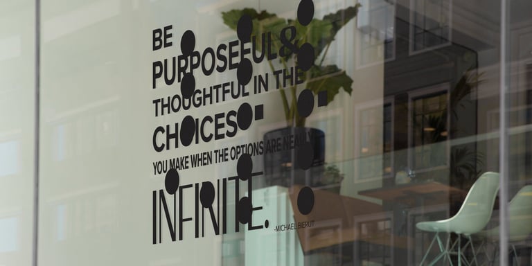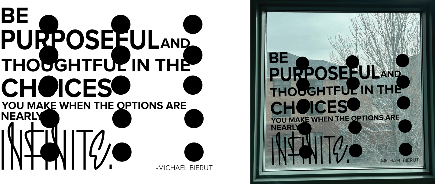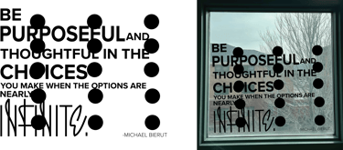 Inspiration from Michael Bierut's Yale Architecture pieces. The style can be reflected in the finished piece of vinyl. The piece to the right shows the squares used to help in the vinyl application, with the size of the pieces it allows for seamless matching.